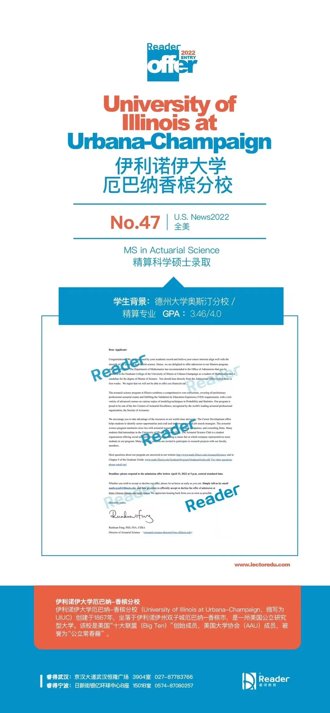 美国--伊利诺伊大学香槟分校--精算硕士录取