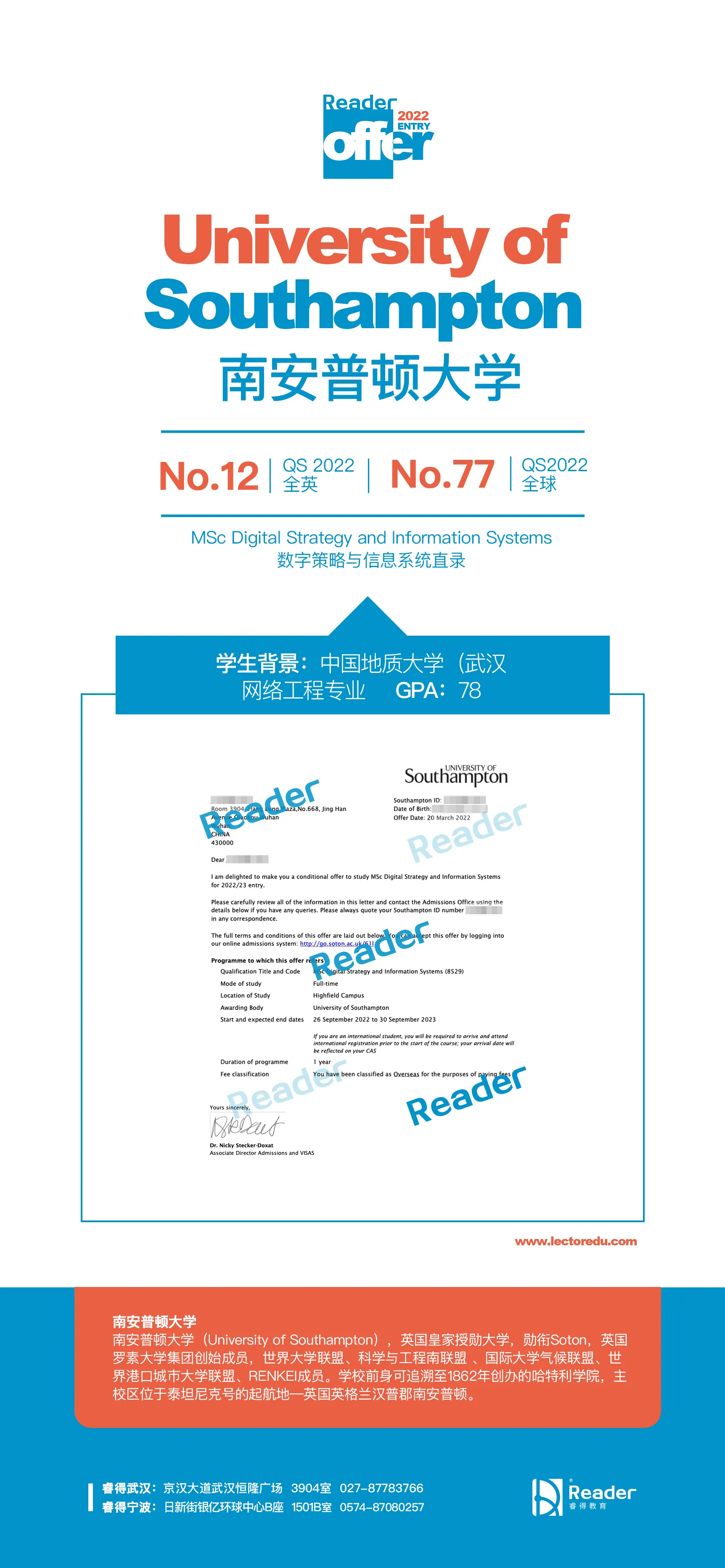 英国--南安普顿大学--数字策略与信息系统硕士录取