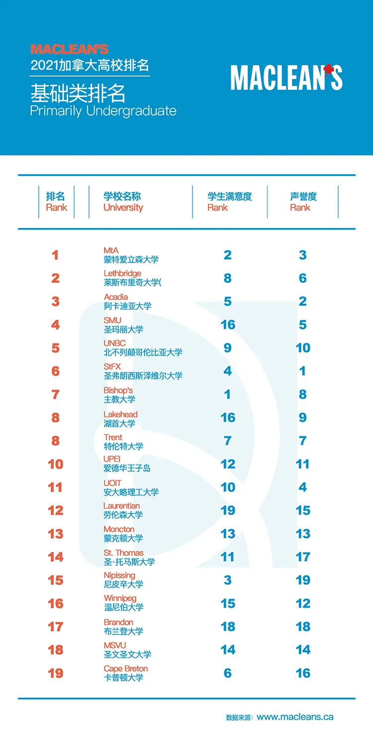 加拿大院校排名