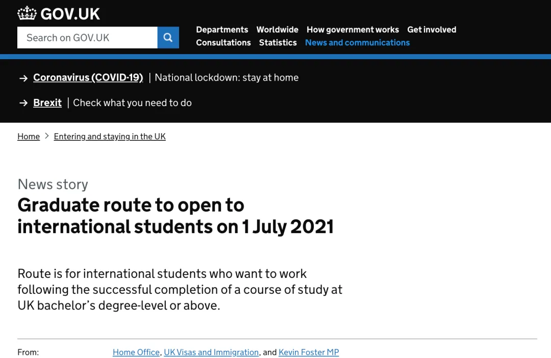 早前因为英国乃至整个欧洲“高烧不断”的疫情蔓延态势,英国内政部在2019年宣布重新恢复的PSW签证(毕业生签证)一直未迎来相关细则的公布。而随着英国疫情的缓和,特别是疫苗接种工作的陆续展开,英国政府终于在近期宣布,PSW签证将于2021年7月1日开始接受申请。