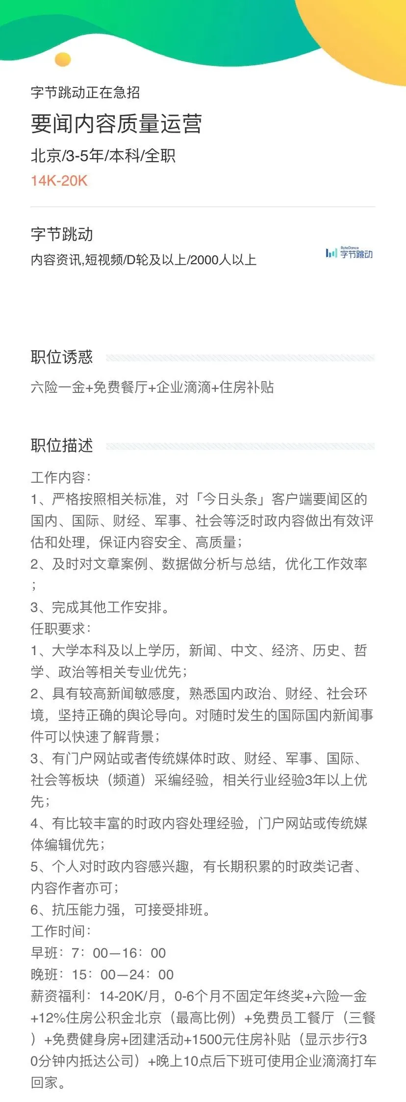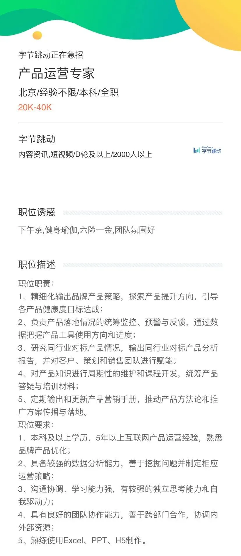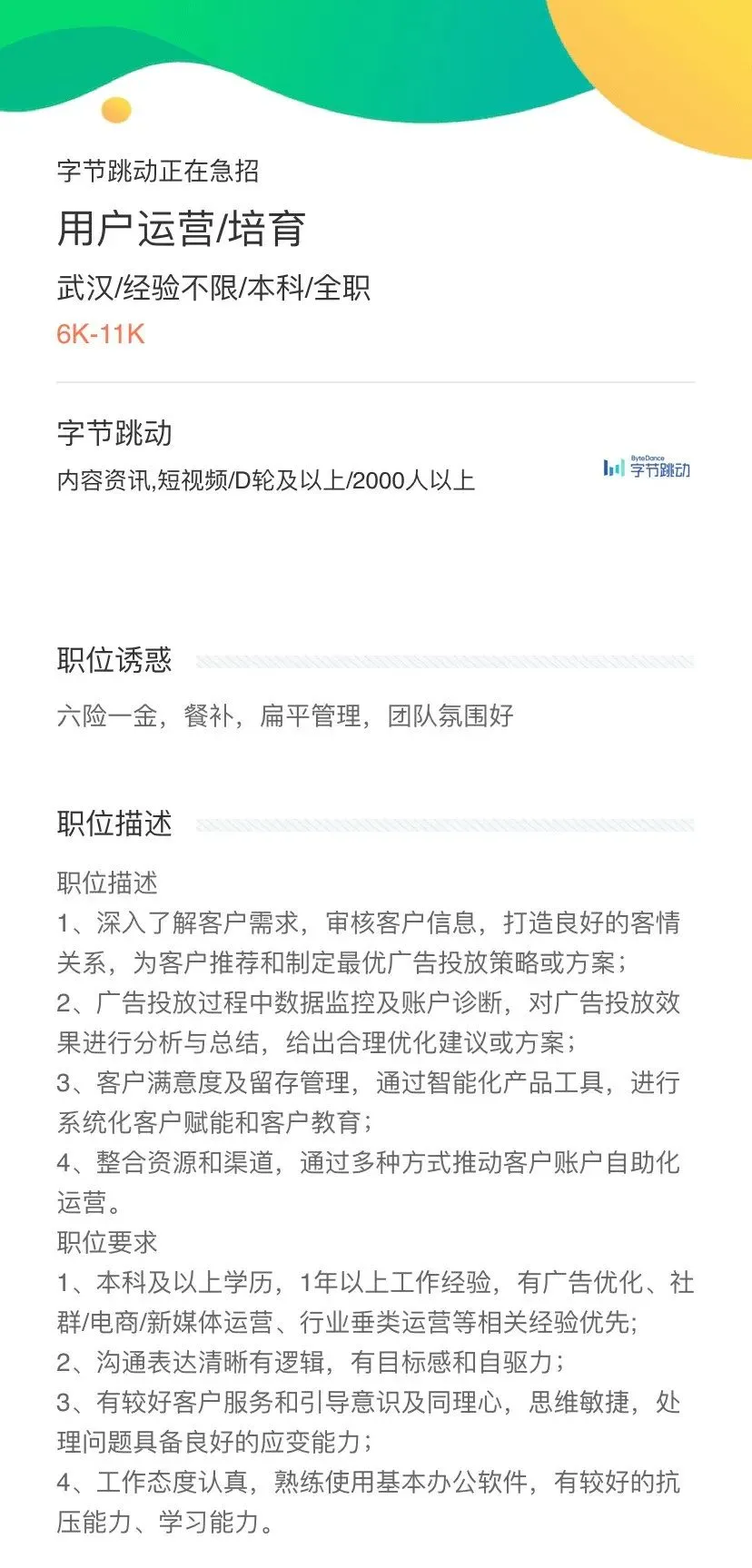 在现实中,运营岗的招聘要求又是怎样呢?这里我们以字节跳动三个岗位的招聘为例向大家简单进行介绍: