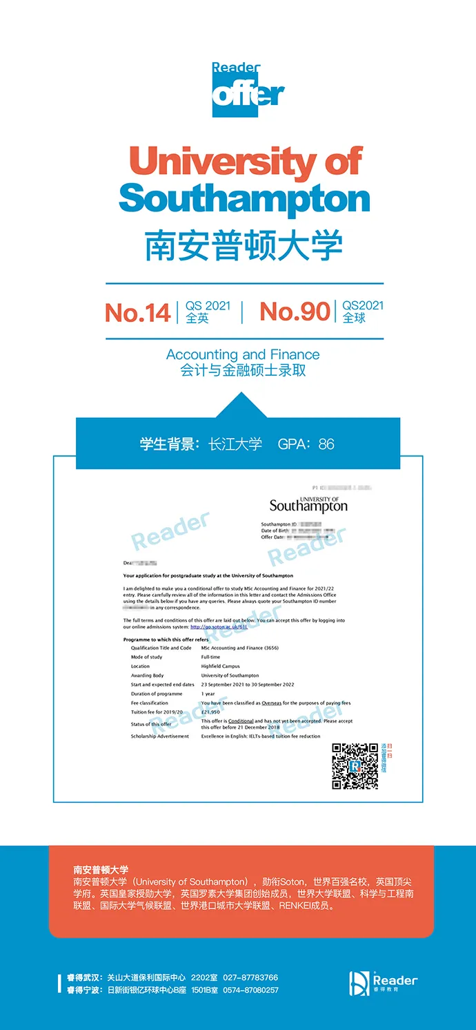 英国--南安普顿大学--会计与金融硕士录取