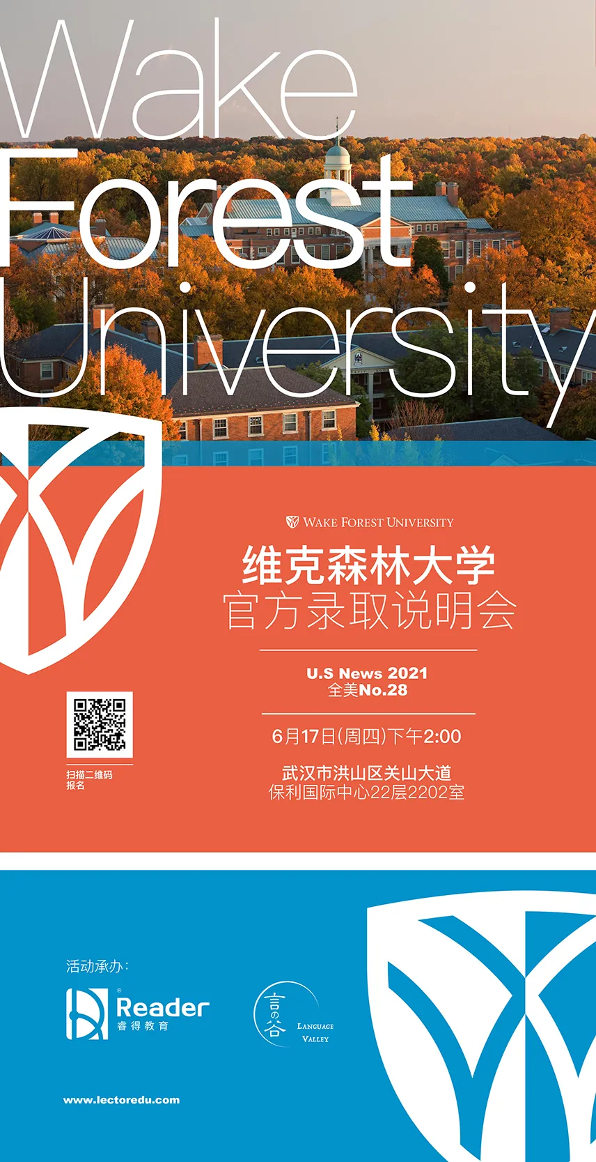 6月18日,美国维克森林大学将在睿得教育举行官方录取说明会