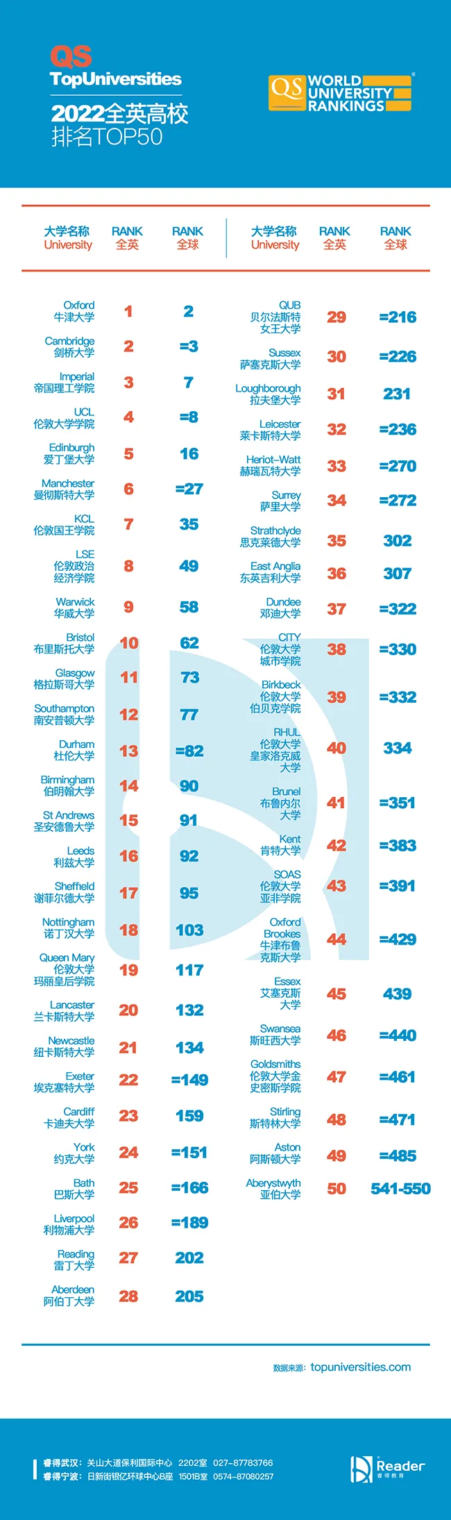 QS2022年世界大学排名公布,英国TOP50花落谁家?