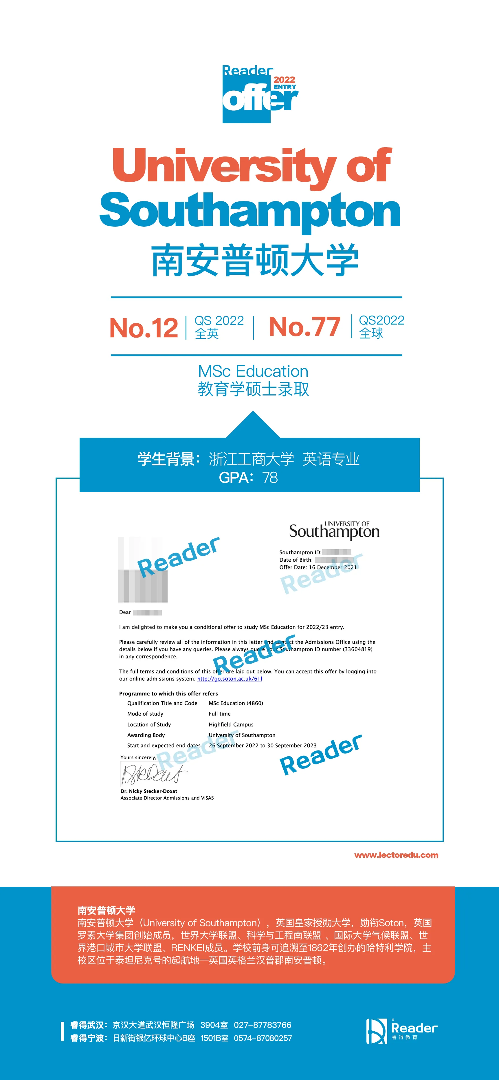 英国--南安普顿大学--教育学硕士录取